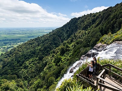 Discover the highest waterfall in the North Island, located only 15 minutes drive from Matamata. This beautiful waterfall plunges 153 metres over the Kaimai escarpment where large boulders form natural pools and cascading waterfalls.